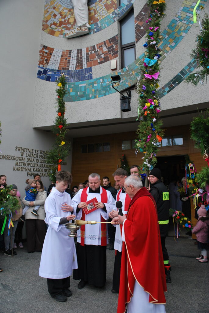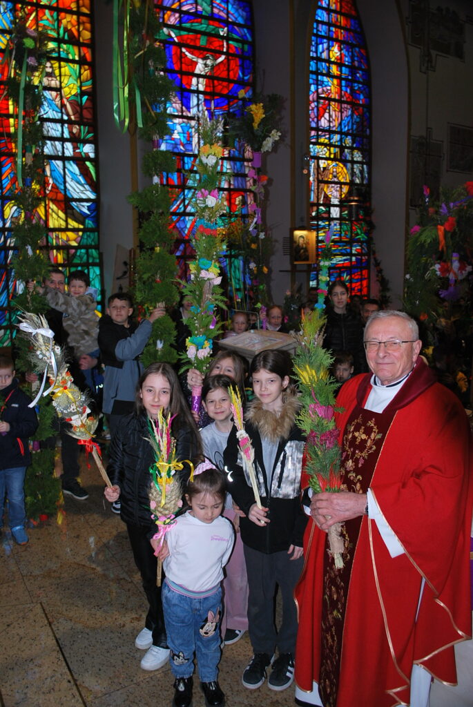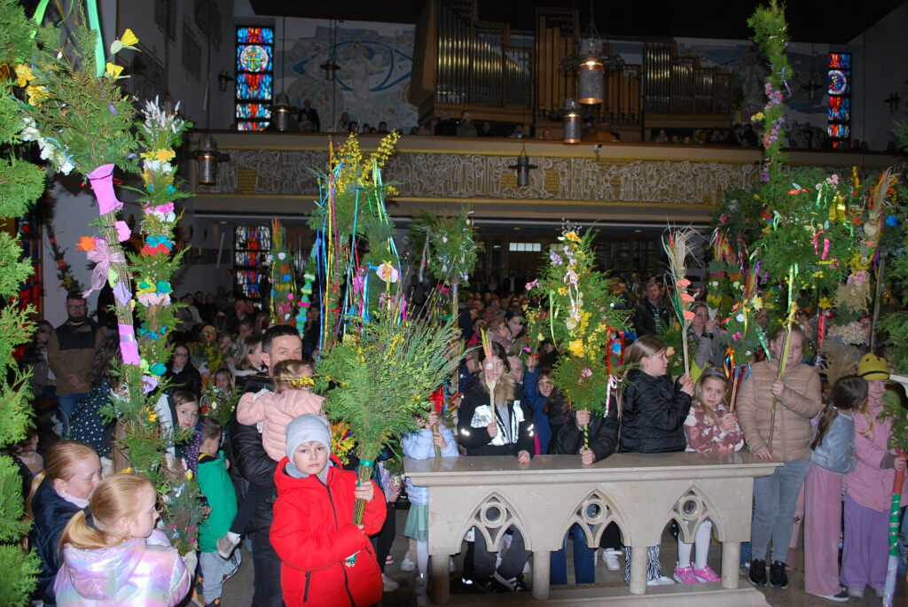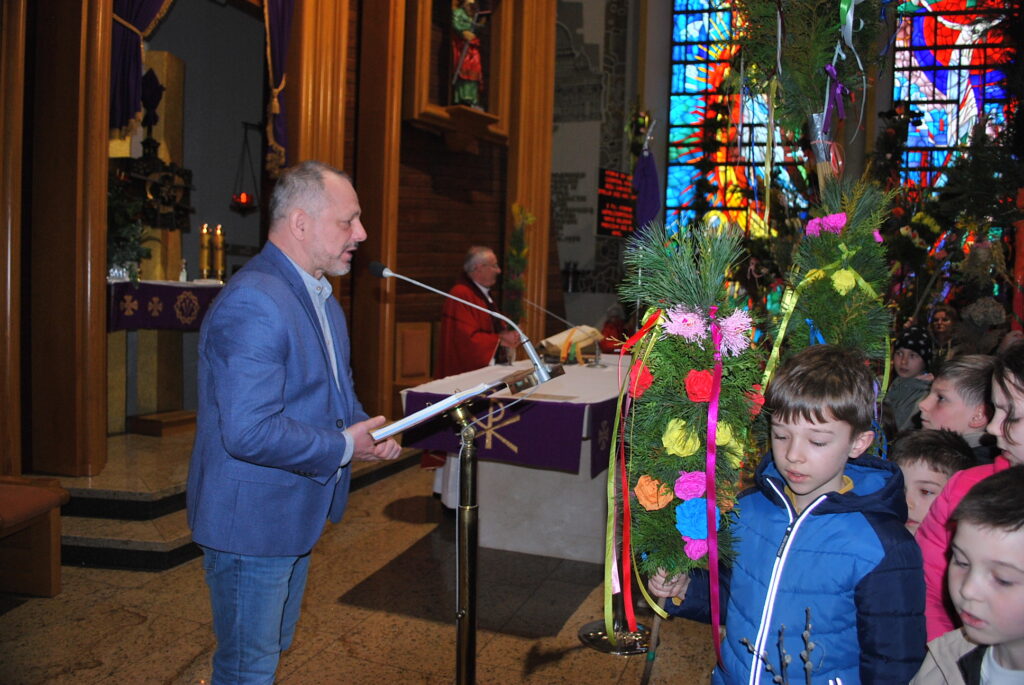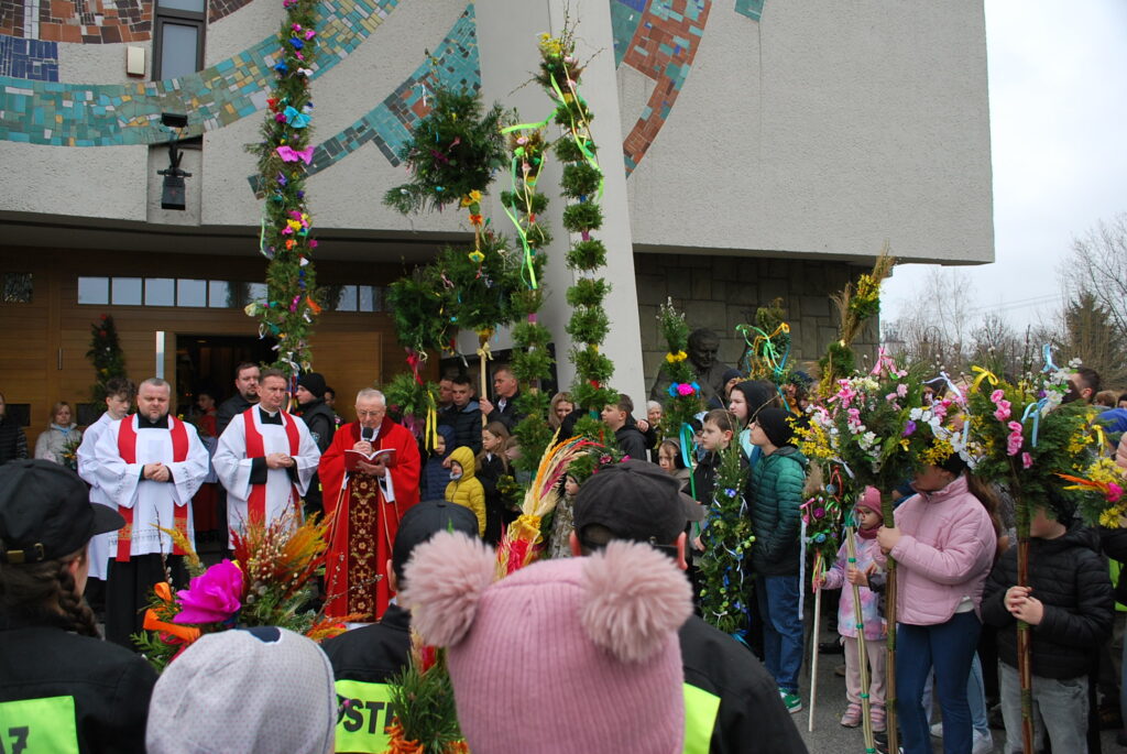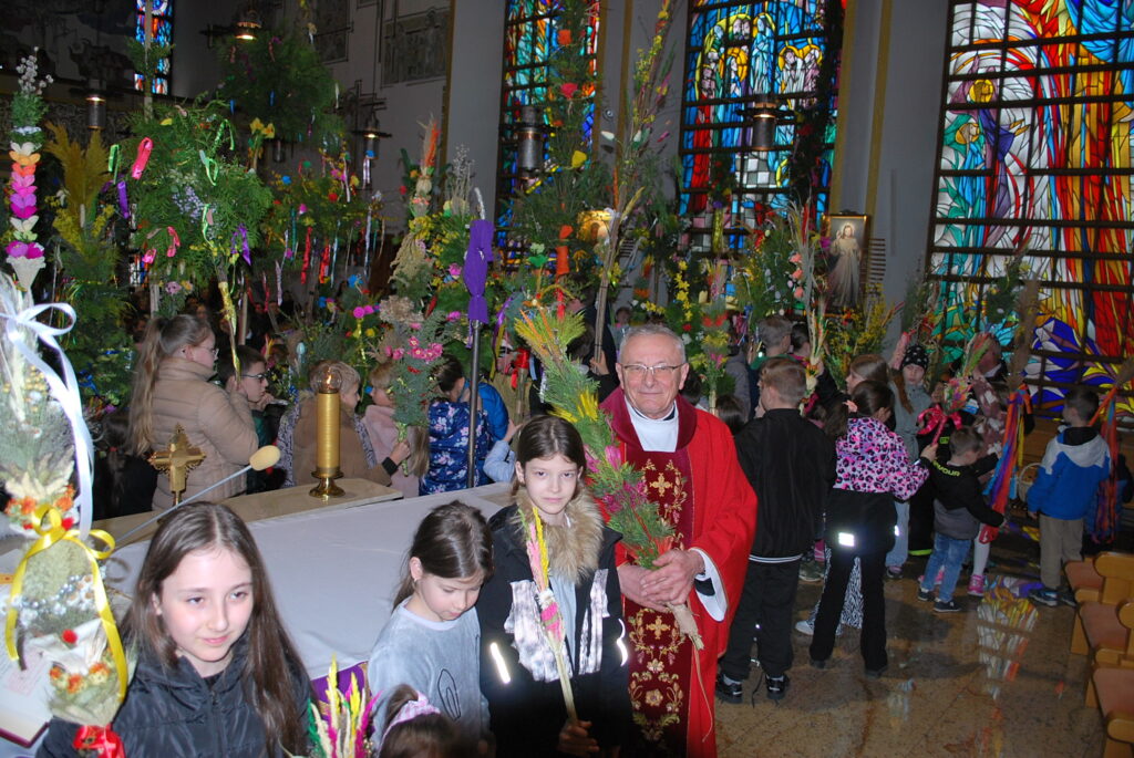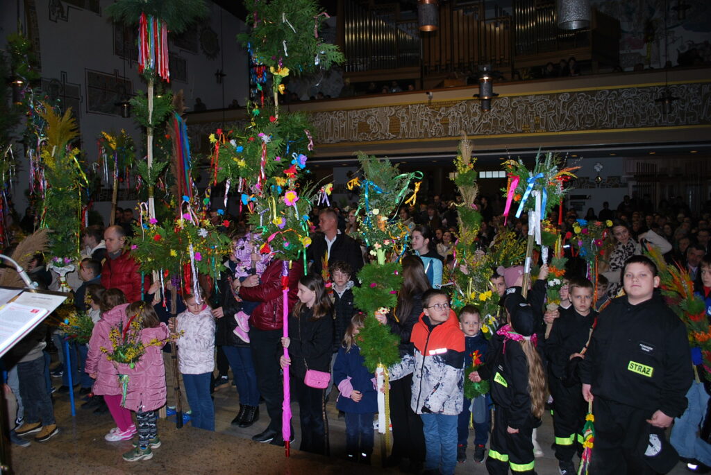 Na uroczystość Niedzieli Palmowej w naszej parafii dzieci przyniosły do poświecenia piękne palmy. Rada Sołecka przeprowadziła konkurs palm, wyróżniono palmę wykonaną przez druhów Straży Pożarnej. Gratulujemy, palma jest wyjątkowa, jej wysokość osiąga 9 metrów.