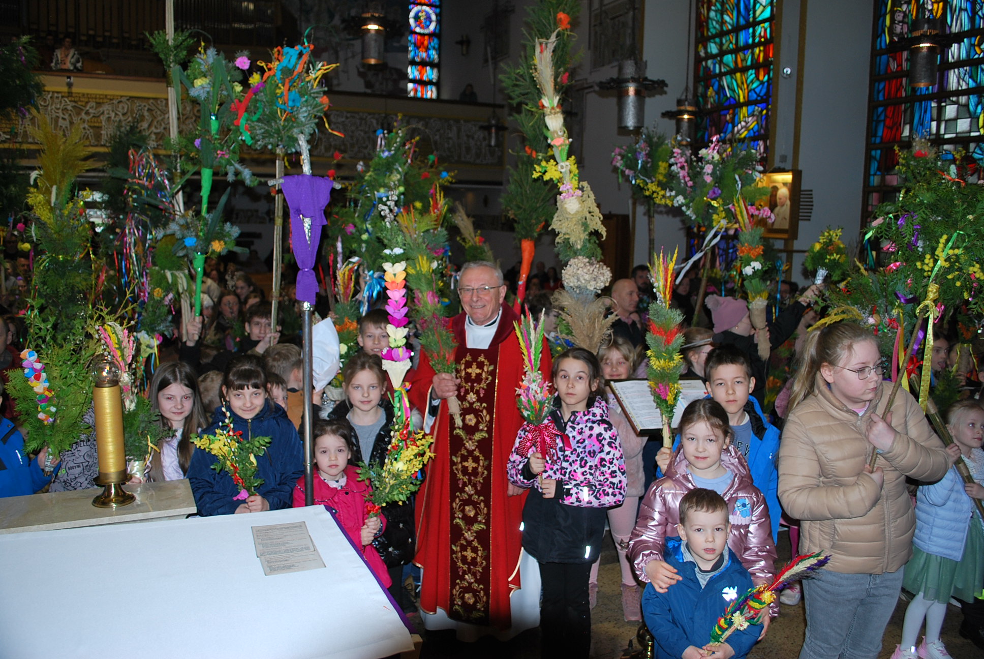 Na uroczystość Niedzieli Palmowej w naszej parafii dzieci przyniosły do poświecenia piękne palmy. Rada Sołecka przeprowadziła konkurs palm, wyróżniono palmę wykonaną przez druhów Straży Pożarnej. Gratulujemy, palma jest wyjątkowa, jej wysokość osiąga 9 metrów.